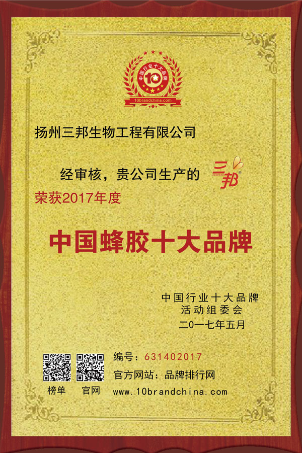 揚州三邦生物工程有限公司源于1970年,由原江都蜂乳廠(地方大集體單位)2000年改制重組,是多年從事蜜蜂養(yǎng)殖、蜂產(chǎn)品和食品科研、生產(chǎn)、銷售的全國蜂產(chǎn)品行業(yè)龍頭…...